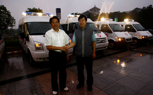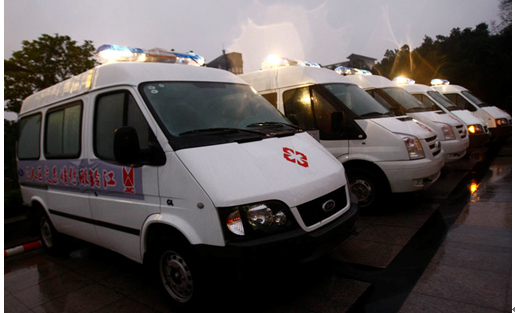 江鈴緊急趕制的5輛福特全順救護(hù)車一到達(dá)災(zāi)區(qū),立即被派往受災(zāi)前線救護(hù)受災(zāi)民眾。 |