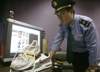 北京市工商人員查獲利用互聯(lián)網(wǎng)出售假冒耐克運(yùn)動(dòng)用品的個(gè)體戶。 |