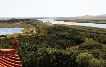 吉林省琿春市防川三國接壤的獨(dú)特景觀:左上方為俄羅斯,右上方為朝鮮,下方為中國,右方水域?yàn)閳D們江。新華社記者 徐家軍 攝