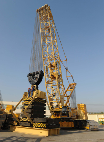 徐工集團(tuán)生產(chǎn)的能吊起650噸貨物的履帶起重機(jī)。新華社記者