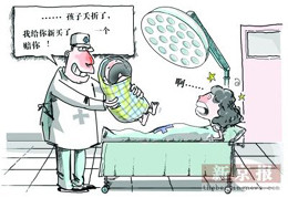 2006年2月,新疆一位年輕孕婦在昌吉市恒安堂醫(yī)院生產(chǎn)。由于醫(yī)生誤診,導(dǎo)致嬰兒出生即夭折、產(chǎn)婦大出血后切除全部子宮。事故發(fā)生后,醫(yī)院院長(zhǎng)偷偷打來電話說買了個(gè)女嬰賠給他們。(4月24日《中國(guó)青年報(bào)》)