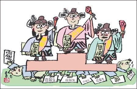 一項(xiàng)調(diào)查表明,復(fù)讀生已成為高考的主要參與者。2007年報(bào)名參加全國(guó)普通高校招生的1010萬(wàn)人中,有289萬(wàn)為往屆生,占28.6%。一個(gè)不可忽視的情形是,隨著就業(yè)壓力的增大,越來越多的學(xué)生希望進(jìn)入名牌大學(xué),導(dǎo)致復(fù)讀生的數(shù)量繼續(xù)上升。(