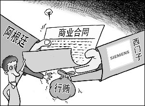 德國西門子公司在布宜諾斯艾利斯的辦公室上周遭到阿根廷政府突擊搜查。上世紀(jì)90年代梅內(nèi)姆政府計劃將全部國民的身份證電子化,西門子為了獲得這個總額達12.6億美元的合同,對阿政府高官行賄。梅內(nèi)姆政府最終簽署了該合同,但隨后上臺的杜阿爾德總統(tǒng)又宣布取消。西門子為了使這份合同“起死回生”,直到2004年基什內(nèi)爾政府期間仍然繼續(xù)行賄。