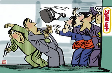 只因有胃病吃飯較慢,加上正趕上乘警和乘務(wù)員要用餐,竟然被車上乘警和列車員強(qiáng)行連推帶拉攆出了餐車!重慶市民王柏華元旦乘坐K586次列車回渝遇上了這件傷心事,被攆出過(guò)程中,還弄丟了3000多元的鉑金戒指,讓他新年第一天就受了一肚子窩囊氣。(1月3日《重慶晚報(bào)》)