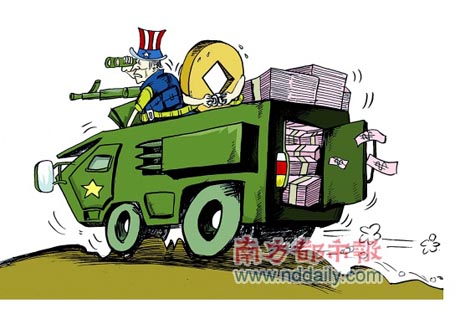 過去十年,中美的經(jīng)濟(jì)模式是中國生產(chǎn)、美國消費(fèi),然后中國又將其積累的龐大的外貿(mào)盈余購買美國國債,進(jìn)一步支持美國消費(fèi)增長。因此中美這種關(guān)系被稱為中美經(jīng)濟(jì)聯(lián)合體。然而,這種消費(fèi)泡沫總有破滅的時(shí)候。經(jīng)濟(jì)危機(jī)爆發(fā)后,美國首先想到的是開動(dòng)印鈔機(jī)、“以泡制泡”的救市思路:我的經(jīng)濟(jì)和消費(fèi)好了,你的出口和產(chǎn)能就有救了,所以你要大力支持我,買我的債。中國經(jīng)濟(jì)似乎已經(jīng)被綁在美元戰(zhàn)車上。