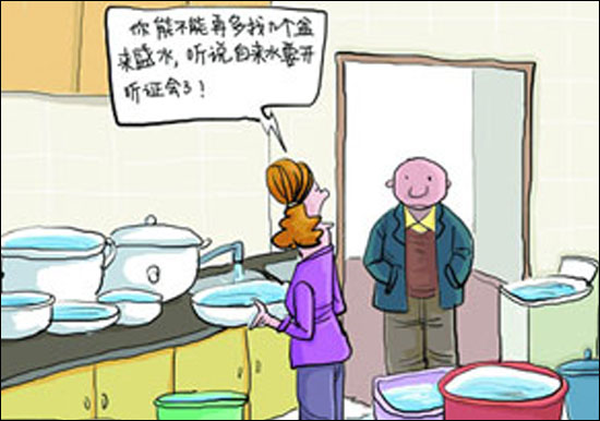 本月16日自來水價(jià)格調(diào)整將召開聽證會,自來水價(jià)格可能會上漲,家住北京順義的居民聞訊集中到順義自來水公司大量購水。由于北京順義區(qū)的購水上限為500噸,不少居民甚至一次性買回足夠未來5年使用的水量。