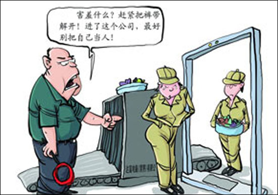 “8000位打工妹,是誰(shuí)在光天化日之下脫去你的褲腰帶?”近日,網(wǎng)友報(bào)料:一家在華外企,下班時(shí)居然要求女工在眾目睽睽下解開(kāi)褲腰帶接受安檢。(12月23日《南方日?qǐng)?bào)》)