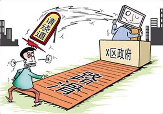 市民在哈爾濱市政府網(wǎng)站反映南崗區(qū)政府門(mén)前大理石步道板雨雪天氣濕滑難行,官方回復(fù)是“可以繞行,沒(méi)必要非在其上面走”。