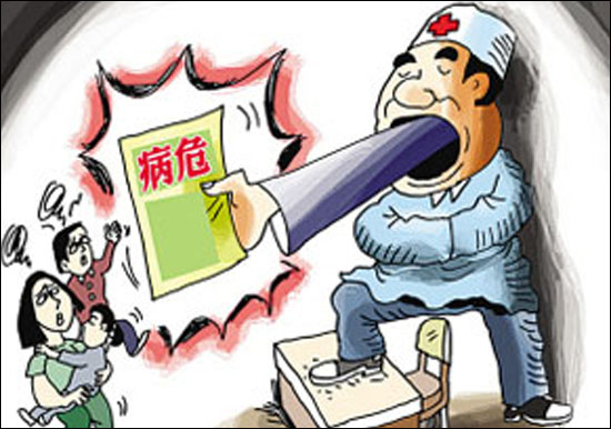 重慶某醫(yī)院醫(yī)生沒(méi)詳細(xì)檢查患兒就開了病危通知書,三歲女孩外婆險(xiǎn)些暈倒。結(jié)果只是普通感冒,三天后孩子就沒(méi)事了(1月21日《重慶晚報(bào)》)。