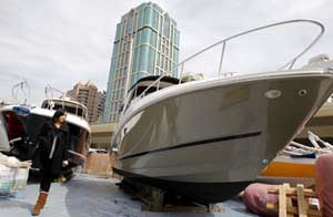 除了國際品牌紛紛搶灘中國內(nèi)地市場外,在本屆上海游艇展上,國產(chǎn)游艇也可謂“揚(yáng)眉吐氣”。上海毅宏所攜的價值1398萬元的46尺豪華游艇開展首日即成交,買家是河南一酒店開發(fā)商,另外還簽訂了5艘63尺和46尺游艇的訂單;汕頭揚(yáng)帆于水上展區(qū)展示的游艇也成功售出,售價超過700萬元;浙江澳托美克也售出了近10艘價格在100萬元左右的游艇;江蘇新晟更是簽訂了逾30條游艇的訂購協(xié)議;紅雙喜兩艘逾500萬元的游艇也覓得5個意向買家。 “我們這次帶來了兩艘外形不同,內(nèi)裝風(fēng)格也不一樣的船,這帶給了顧客更多選擇!鄙虾<t雙喜游艇有限公司總經(jīng)理周娟說,這是紅雙喜集團(tuán)首次攜帶兩艘實船亮相上海游艇展,能有這么好的成績,周娟自己也表示很意外,“我們的切身感受是,國內(nèi)有越來越多的人,愿意去享受游艇生活,也有了更強(qiáng)的購買意愿!
