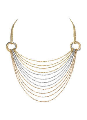 卡地亞Trinity三色金全新系列以黃K金、白K金或玫瑰K金打造,彼此交纏,并垂掛一束精致流蘇,更顯輕盈靈動。此款高級時裝珠寶系列賦予項鏈、手鏈、長項鏈、胸針和領(lǐng)帶一種精巧的流暢之美,搭配由卡地亞精心制作,輕柔曼妙,充滿現(xiàn)代氣息的編織流蘇墜飾,并以三色金環(huán)扣固定。
