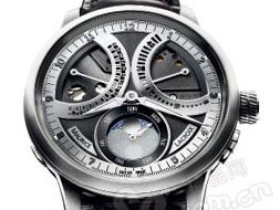 一看盤面,就知道是典型的艾美設(shè)計,這也是剛剛獲得2010“red dot”設(shè)計大獎的款式,很多人一拿到以為2點和10點是兩個逆跳,其實你錯了,在10點位置是日歷逆跳沒錯,可與之相對的2點位置是能量儲存。所以,在看功能的時候,千萬別想當(dāng)然,一定看清楚數(shù)字再說。