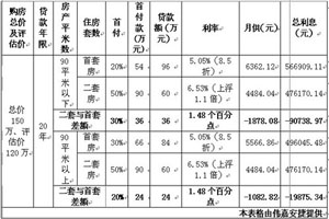 以總價(jià)為150萬(wàn)、評(píng)估價(jià)為120萬(wàn)的房產(chǎn)為例:90平米以下二套房與首套房相比,借款人要多支付首付36萬(wàn)元,每月月供可節(jié)省1878.08元,總利息可節(jié)省90838.97元;90平米以上二套房和首套房相比,借款人要多支付首付24萬(wàn)元,每月月供可節(jié)省1082.82元,總利息可節(jié)省19875.34元。(見(jiàn)下圖)