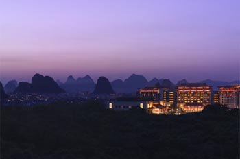 Highlights:建筑外觀:為了讓所有客房均能享受到最佳視野,酒店的高度僅有七層,但橫向跨度極大,整個(gè)樓群呈扇面展開,再以中國傳統(tǒng)的飛檐式屋脊加頂,呈現(xiàn)出一派古今結(jié)合的外觀。 臥室背景墻:每間臥室的背景墻都是一幅桂林山水圖,且間間不同,畫面中的桂林山水與窗外的風(fēng)景虛實(shí)對(duì)照,相映成趣。 Must