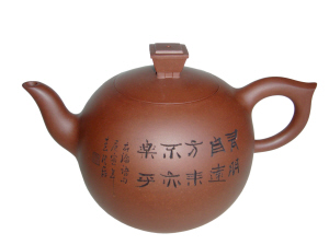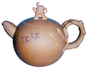 今年5月,世博會在上海隆重舉行,滬上知名壺藝設(shè)計師談桃林先生以紫砂為媒,借世博寓意,創(chuàng)意設(shè)計了“世博壺”和“玉蘭壺”,為這場萬眾矚目的盛會獻上了一份賀禮,同樣引起了收藏愛好者的濃厚興趣。 “世博壺”(右圖)通體圓潤如球,好比你我生活之家園——地球。壺身一側(cè),由中國書法家協(xié)會主席張海題書的孔子名言:“有朋自遠方來不亦樂乎”,另一側(cè)則為陶泠先生繪制而成的上海市市花玉蘭花,該壺紫砂泥質(zhì)地優(yōu)良,外形線條流暢,涵義深遠!坝裉m壺”(左圖)壺嘴與壺柄的設(shè)計以上海市市花白玉蘭為主體。兩朵嬌媚玉蘭依偎在好似地球的壺身兩側(cè),象征在上海舉辦的世博會將滬上海派文化灑向世界人間。壺頂站立著本屆世博會吉祥物海寶,嬌小可愛的海寶居于地球之頂端,跳起歡樂的舞蹈迎接五湖四海的朋友。壺的兩側(cè)也進一步引申出了本款茶壺設(shè)計師的初衷。一側(cè)由中國書法家協(xié)會主席張海題書,另一側(cè)則由著名畫家張桂銘所繪的燕子飛躍圖,象征著通過本屆世博會要將中國文化播撒浸潤世界文化土壤之中。 “字依壺傳,壺隨字貴”,書畫名家參與紫砂壺的創(chuàng)作,往往受到收藏拍賣界的青睞,“相明石瓢壺”的天價再一次說明了這個道理。