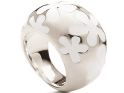 Nugget系列攫取可愛(ài)的波普藝術(shù)創(chuàng)意和有趣的嘻哈精神。歡快的花朵,充滿魔幻色彩的螺旋及花球圖案就像各式云朵,在天藍(lán)的底色上盡情舞動(dòng)。簡(jiǎn)約、時(shí)尚的造型讓人愛(ài)不釋手。這一搭配琺瑯的飾品系列,透露出原始的幸福感和本能的親近感。