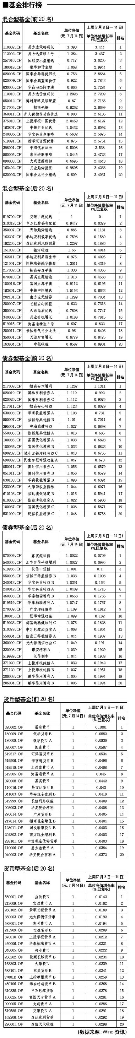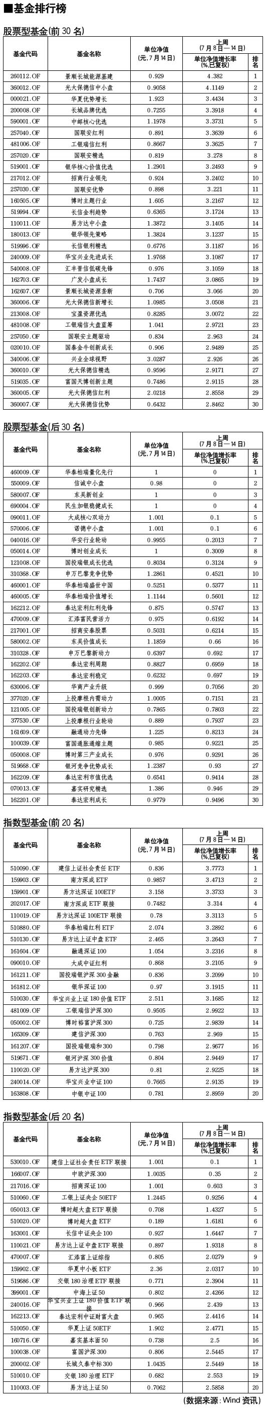 基金排行榜[2010-07-16]