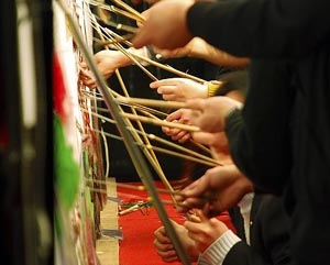 走進船塢劇場的后臺,23歲的演員王貞超正蹲在地上,耐心地用各種工具一點點修復破損脫落的皮影道具。作為上海木偶戲團的年輕演員,王貞超也算得上主力,既能演戲,又能修復。 “這樣的孩子,在我們這里是很不容易的!敝谱魅擞趹涋r說,此次為了在世博園中的演出,僅《三國演義》一部戲,就有35位演員要輪班演出,幾乎沒有時間休息。離開北方土地的皮影,在上海潮熱的梅雨天氣也極不適應,有的變形卷曲,有的疲軟斷裂,有的發(fā)霉惡臭。基本上每天演出結束后,都有斷胳膊少腿的皮影需要修復。為此,王貞超必須為那些卷曲斷裂的牛皮影找一塊透明的塑料固定起來。 “天熱的時候,這兒的演出環(huán)境至少是40攝氏度以上,演員們頭頂上是10盞1500瓦的燈泡。”何曉星說,露天劇場沒有裝空調,也不敢開電扇,怕吹皺了幕布影響演出效果,只能硬挺著。更糟糕的是,由于船塢劇場在地下四層的位置,任何房間走進去都是一股霉味,蚊蟲肆虐,愁壞了劇團。他們索性在每次演出后將所有道具費力地搬到樓上,避免受潮,精心保護。 “每天演出兩場皮影戲,對演員是高強度的訓練!庇趹涋r指著《三國演義》道具中的一只“怪獸”說,“這東西足有1米多長,3斤多重。過去的演員都是一人操控幾個角色,皮影很小。但為了讓觀眾看得清楚,我們的道具都做得偏大,為了讓動作更細膩,關節(jié)設計了十多個,所以需要兩三個人同時操縱一個角色! 住在嘉定的王貞超,每天早上7點半出發(fā)去世博會,有時要到晚上七八點才能回去。那些快退休的老演員,或是18歲的年輕演員,在世博會期間都過著這樣的忙碌生活。 “通過世博會的磨練,我覺得傳統(tǒng)皮影戲和木偶劇是后繼有人的。”團長何曉星很慶幸有世博這樣的機會,既展現(xiàn)了中國傳統(tǒng)文化,又鍛煉了團隊,“我們這次的演員,很多都是‘80后’、‘90后’的孩子,他們成長非?,也真正地對傳統(tǒng)藝術產生了興趣。” 何曉星說,兩年后,上海木偶戲團將有一大批一線老演員紛紛退休。但他一點也不擔心,眼前這些“80后”、“90后”的本科生與研究生們,將是傳統(tǒng)藝術未來的接班人。