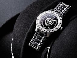 Black款式,表圈鑲滿鉆石及黑色藍(lán)寶石水晶,加上表盤中央的鉆石,稱其為Diamond