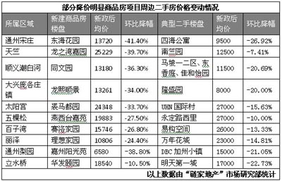新政后百天,153個新盤成交價下降,帶動所在區(qū)域二手房降價明顯。新房與二手房同時出現(xiàn)了從新政前價格齊漲到新政后價格齊降得現(xiàn)象。