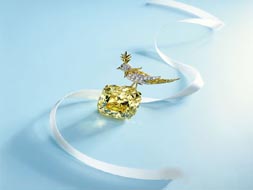 Tiffany出資購(gòu)得。依據(jù)品牌既有傳統(tǒng),切工的目標(biāo)是讓鉆石展露最耀眼光芒,而非以保留最大重量,這顆黃鉆最后被切割成90個(gè)切面,重達(dá)128.54克拉。正如同一位寶石專家所言,這顆黃鉆彷佛是由內(nèi)部的一股明焰照耀出閃亮懾人的火光。這顆著名的Tiffany黃鉆在品牌設(shè)計(jì)師“珠寶詩(shī)人”Jean