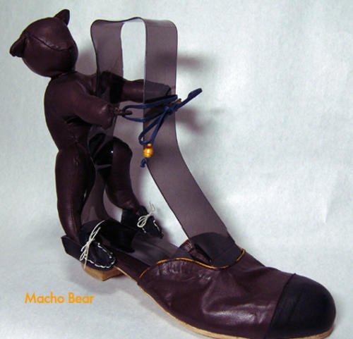 Uenobe,一位日本的鞋履設(shè)計(jì)師,他常常把異想天開(kāi)的想法運(yùn)用在鞋的設(shè)計(jì)上,創(chuàng)新主要體現(xiàn)在造型、結(jié)構(gòu)上,設(shè)計(jì)新奇、戲謔、充滿趣味性,同時(shí)又保持著日本現(xiàn)代簡(jiǎn)約時(shí)尚的美感。 Uenobe的鞋,均是由他親手制作,純手工工藝,而且除了縫紉機(jī)外,都只用手工具。他覺(jué)得,把藝術(shù)穿在腳上,同時(shí)又不妨礙可穿性的基本功能,才是他的追求。