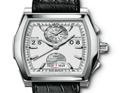 萬國表(IWC)達芬奇數(shù)字式萬年歷鉑金腕表這款腕表融合了先進科技與全新酒桶形鉑金表殼,全球限量發(fā)售500枚。腕表將帶飛返功能的計時碼表置于獨立表盤的中心,表盤同時帶有12小時時標、60分鐘刻度,以及數(shù)字式萬年歷,可顯示閏年周期、月份和日期。表殼:鉑金材質(zhì),酒桶形,藍寶石水晶玻璃底蓋,可顯示機芯運轉(zhuǎn)。表盤:紐索飾紋,葉形指針,棒形時標,60格分鐘刻度。機芯:自動上弦機芯,474枚零件,52枚寶石軸承,68小時動力儲備,每小時振頻28,800次。功能:時、分、小秒針,飛返式計時碼表功能,萬年歷。