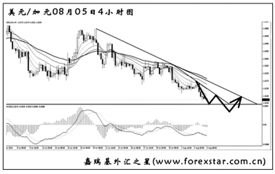 ▲美元兌加元繼續(xù)處于日線圖的大震蕩區(qū)間之中,但短線的下跌趨勢明朗。圖中的兩條下降趨勢線均對其有明顯的壓制作用。由于匯價距離1.0140的前方低點支撐已經(jīng)不遠,面臨一定的反彈風(fēng)險?傻却涝獌都釉{(diào)至圖中上方趨勢線阻力一帶再行考慮入場。