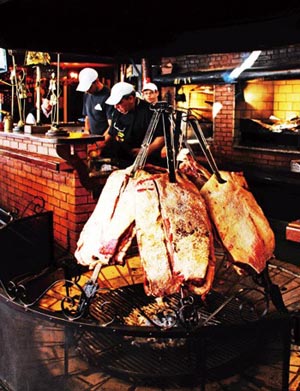巴西人喜好烤制食品,烤牛肉,烤羊肉,烤雞肉,烤肉腸,甚至是烤菠蘿(菠蘿的表面涂上巴西蜂蜜)。與佐料頗多的較為精細(xì)的中國式燒烤不同,他們更喜歡充滿原始味道的烤肉,鮮嫩而粗獷,大多只用鹽來調(diào)味,烤制時(shí)要不斷翻動(dòng)以保持肉的滋潤和避免水分過度蒸發(fā)?梢园岩徽麎K的肉穿在釬子上然后架在火上烤,也可以把料理后的肉穿在一個(gè)長約1米、帶凹槽的扁平鐵棍上再放入明爐灶上烤制,大粒大粒的粗鹽融化滲透后再刷上油和經(jīng)過調(diào)制的蜂蜜,待兩面金黃、肉香撲鼻的時(shí)候,拍掉鹽粒,再用利刃切割表層食用。不同的部位,不同的火候,有不同的滋味,相同的是都保留了一股松木的芬芳。