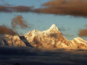 南迦巴瓦曾經(jīng)被中國國家地理評為中國最美的雪山之一,位于西藏南部林芝地區(qū)雅魯藏布江大拐彎附近,是喜馬拉雅山東端最高峰,海拔7756米。高度排在世界最高峰行列的第15位,是7000米級南迦巴瓦山峰中最高的。巨大的三角形峰體終年積雪,云遮霧蓋,難以見其真容。南迦巴瓦峰也叫那木卓巴爾山,藏語意為“天上掉下來的石頭”,有“眾山之父”之稱。