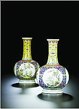 據(jù)了解,本次拍品包括多個來源顯赫的私人珍藏,如著名鑒賞家和收藏家戴潤齋的清宮御瓷收藏,以及其他中國書畫和當(dāng)代中國藝術(shù)的私人珍藏。其中,“中國瓷器及工藝品”板塊格外受關(guān)注,“瑰辭神筆——重要私人清宮御制工藝珍藏”中的一件乾隆帝御寶交龍鈕白玉璽,印文“信天主人”,12.9厘米見方,估價2500萬至3000萬港元;“花賞瑤華——巴黎名藏中國藝術(shù)品專拍”中,清雍正時期的御制金胎畫琺瑯淺綠地“丹鳳呈祥”圖蓋壺估價2000萬至3000萬港元;“彩華騰瑞——戴潤齋清宮御瓷珍藏”中一對清乾隆時期的御制琺瑯彩“祥云瑞蝠”開光式“四季花卉”圖紙捶瓶創(chuàng)下估價的全場紀(jì)錄,分別為6000萬至8000萬港元及800萬至1000萬港元。