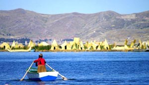 踏上秘魯?shù)牡目系母u,你會感覺天是那樣近。腳下松軟的蘆葦蒲,不時發(fā)出“吱吱”聲,訴說著在此繁衍生息幾百年的烏魯斯人的故事。湖面波光粼粼,穿著五顏六色民族服裝的土著,是島上最鮮活的景物。