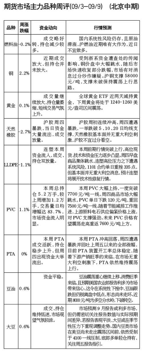 期貨市場(chǎng)主力品種周評(píng)[09.03-09.09]