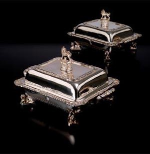 具皇者氣派的銀器有出自英皇喬治四世時期方形高拱蓋銀托盤