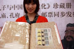 今年是孔子誕辰2561周年,中國郵政日前發(fā)行《孔廟、孔府、孔林》郵票一套三枚,中國集郵總公司同步發(fā)行《孔子與中國傳統(tǒng)文化》大型紀(jì)念珍藏冊,全球最大發(fā)行量為兩萬冊。