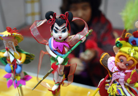 10月15日至24日,長春市舉行首屆收藏文化博覽會,博覽會以“繁榮收藏市場·弘揚(yáng)傳統(tǒng)文化”為主題,來自巴基斯坦、印度、日本、韓國、阿富汗等國的展商,攜帶世界各地的奇珍異寶匯聚長春。本屆展會共設(shè)立展位近400個(gè),展出面積達(dá)1.2萬平方米。 圖為博覽會上的泥人偶工藝品。