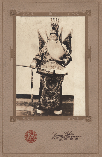 而出現(xiàn)在2008年華辰影像拍場(chǎng)的1219號(hào)拍品是這個(gè)影像的原版老照片,它表明了該照片是北京源記照相館所攝,而非出自泰豐照相館。隨后陸續(xù)面市的數(shù)張?jiān)撚跋竦脑胬险掌,全部來自源記?紤]到源記是泰豐的競(jìng)爭(zhēng)對(duì)手,拷貝泰豐的可能性不大,基本可以判斷這張照片不是1905年豐泰拍攝中國(guó)第一部電影《定軍山》時(shí)的劇照,而是源記拍攝的譚鑫培《定軍山》戲裝照,這個(gè)例證將可能改寫中國(guó)攝影史、中國(guó)電影史和中國(guó)京劇史相關(guān)內(nèi)容。