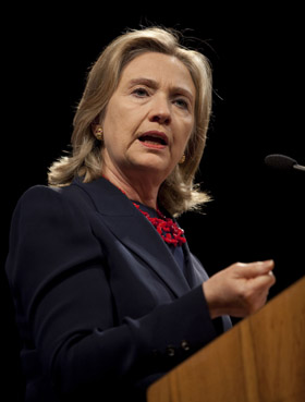 與佩林相反,希拉里·克林頓的著裝風(fēng)格相對(duì)“傳統(tǒng)”。她經(jīng)常穿著與時(shí)尚“絕緣”的四方褲,似乎不同顏色的同款褲子有好幾條!都~約時(shí)報(bào)》戲稱,她的衣柜或許和男性政客的衣柜沒(méi)什么差別。