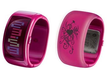 特大的表面設(shè)計(jì),令整體感覺更顯獨(dú)特。 腕表內(nèi)更暗藏玄機(jī),只需按下右邊的按鈕,便會(huì)呈現(xiàn)出一段絢麗蹦跳的畫面。品牌設(shè)計(jì)師還特意在表帶上刻印了獨(dú)特的love