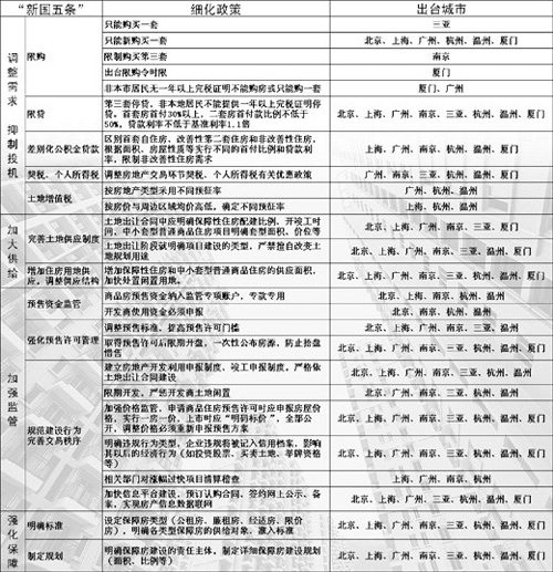 從政有經(jīng),令行為上。截至11月底,已有十五個城市陸續(xù)出臺了落實國家二次調(diào)控的實施細(xì)則,就限購、執(zhí)行差別化房貸、加大住房供應(yīng)和保障房建設(shè)等多個方面做出規(guī)定。日前,本報記者采訪了北京、上海、廣州、三亞、南京、杭州、溫州、廈門等八個城市,了解各個城市在“新國五條”出臺后落實國家調(diào)控政策的情況。