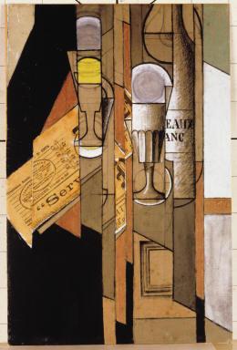 《杯子、報(bào)紙和酒瓶》 胡安-格里斯 1913年