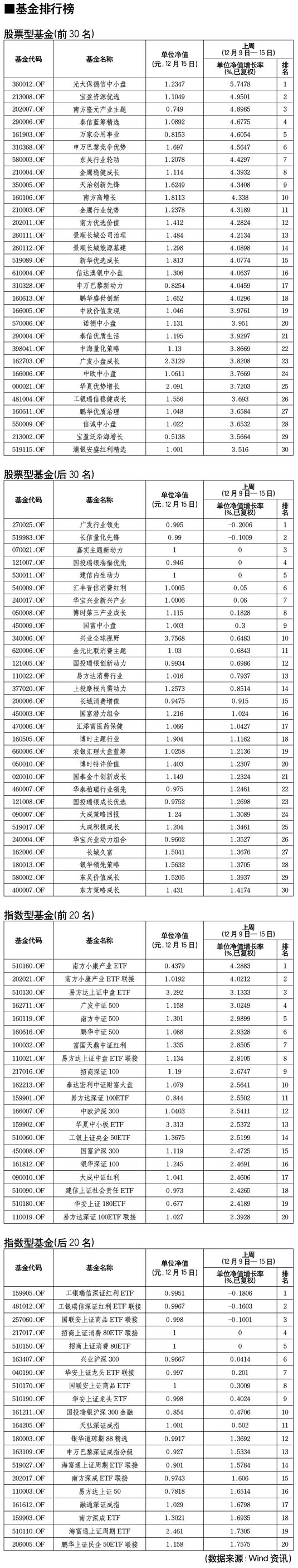 股票型基金排行榜[2010-12-17]