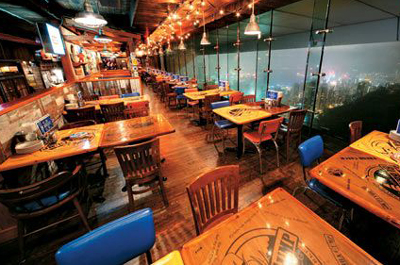 坐落于太平山頂凌霄閣的觀景層的香港阿甘蝦餐廳,六成以上座位面向維港,華燈初上時(shí)分坐纜車上山,即可將從尖沙咀、半山直到中環(huán)的無敵海景一網(wǎng)打盡。香港其他的全海景餐廳,往往裝修得高貴典雅,令家境平常的消費(fèi)者望而卻步。這里卻大相徑庭:美國上世紀(jì)六十年代南方小鎮(zhèn)家庭式的“土氣”裝修,令人第一眼看見就想推門進(jìn)去,在寬大舒服的卡座里無拘束地一坐,舒舒服服地喝點(diǎn)奶茶、吃點(diǎn)魚蝦。