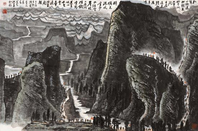 如果說只是一件李可染的《長征》的高價成交,還很難說明問題。事實上,從2010年藝術(shù)品拍賣市場上來看,許多高價成交的拍品,其都曾作為拍賣圖錄上的封面。在2010年北京保利的春拍,華巖的《雪駝殘雪圖》以246.4萬元成交,此件書畫曾為紐約蘇富比1994年秋拍圖錄封面之拍品。陰霾昏暗的天空以淡墨渲染,積雪處留白,樹木用飽含大量水分之筆點染。人物前傾畏寒的動態(tài),老駝富于人情味的表情,使主題更為突出,情景交融,意境含蓄。畫法簡潔,色彩搭配,冷暖對比和諧統(tǒng)一。畫面構(gòu)圖狹長,以顯天高地迥的視覺效果,并襯托人物孤寂的內(nèi)心世界,展現(xiàn)了畫家獨特的藝術(shù)構(gòu)思和出眾的藝術(shù)才能。