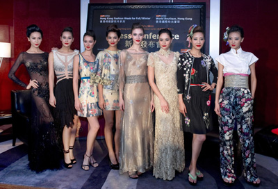 香港貿(mào)發(fā)局日前舉行香港時裝節(jié)及香港國際時尚薈萃新聞發(fā)布會,公布活動詳情。本次時裝盛會將于1月17日至20日舉行。圖為模特在新聞發(fā)布會上進行時裝精選預(yù)展。