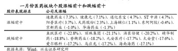 “除2月組合推薦股票——云南白藥、天士力、中恒集團、康緣藥業(yè)、白云山、上海醫(yī)藥外,我們還建議積極關注并擇機增持以下已經(jīng)歷大幅調(diào)整的優(yōu)質(zhì)公司:恒瑞醫(yī)藥、華蘭生物、海正藥業(yè)、華東醫(yī)藥、華海藥業(yè)、國藥股份、一致藥業(yè)、三九醫(yī)藥!眹抛C券發(fā)布的報告表示。