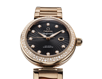 歐米茄Ladymatic18K紅金女表采用紅金表鏈,搶眼的黑色表盤上,小時(shí)刻度鑲嵌有11顆晶瑩美鉆,另有日期視窗。表圈以“雪花鑲嵌”的手法鋪就大量鉆石,盡呈華貴典雅之美。該表款可謂內(nèi)外兼修,采用歐米茄獨(dú)有的8521同軸機(jī)芯,搭配“Si14”硅游絲擺輪。售后服務(wù)保證長達(dá)4年。
