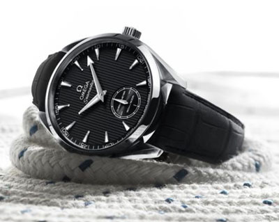 小秒針小表盤位于6時(shí)位置。兩個(gè)表款均搭配有黑色鱷魚皮表帶,表帶內(nèi)側(cè)車以紅線。為歐米茄海馬Aqua
