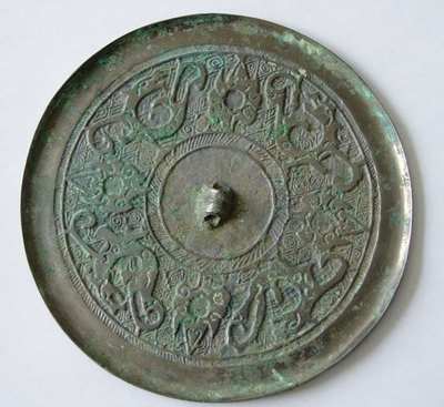 唐代銅鏡的鑄造吸收了漢代的傳統(tǒng)工藝,從現(xiàn)在的一些仿漢鏡來看,唐代仿制的品種不多,僅是繼承基礎(chǔ)上的仿古。最常見的是漢代流行的蟠螭紋鏡、規(guī)矩禽獸紋鏡和七乳禽獸紋鏡。漢代銅鏡紋飾基本上是用陽文雙鉤線條組成,輪廓纖細(xì),但凸起較高,流暢犀利。線條之間的地子,光滑平整。唐鏡制作精良,但唐仿古鏡的紋飾,線條粗率,流暢程度也略為遜色,給人溢范的感覺,底面有不平整感。