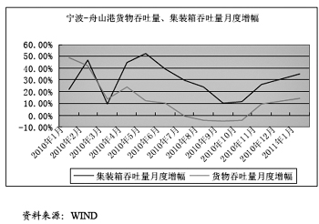 山西證券業(yè)提供了一組數(shù)據(jù)證明該板塊運(yùn)行業(yè)績比較平淡。據(jù)報告介紹:2011年1—2月份我國主要港口外貿(mào)貨物吞吐量完成4.33億噸,同比增長10.2%,較2011年1月增速回落3.3個百分點(diǎn),較2010年增速回落3.97個百分點(diǎn)。受2月份集裝箱吞吐量大幅下降拖累,2011年1—2月集裝箱吞吐量增速回落幅度較大,較2011年1月份增速回落4.20個百分點(diǎn),較2010年全年增速回落5.99個百分點(diǎn)。